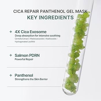 - CICA + PANTHENOL COMPLEX – Tato hydrogelová maska, obohacená o extrakt z pupečníku asijského a panthenol, poskytuje zklidňující hydrataci a pomáhá citlivé pleti cítit se svěží a pohodlně.