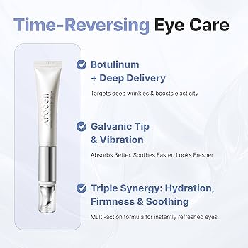 Inovovaný v novém kabátku oční krém s integrovanou vibrační masážní galvanických hlavicí napomáhá regeneraci kolagenu, aby pleť byla pevná, hladká, redukuje vrásky, zvedá svaly a účinně odstraňuje otoky. Krém pomáhá obnovit vitalitu očního okolí. S hustou texturou sestávající z 5 vzácných ceramidů: Ceramide EOP, Ceramide NS, Ceramide NP, Ceramide AS, Ceramide AP napomáhá regeneraci kolagenu v pokožce, vyhlazuje vrásky a redukuje kruhy pod očima. Obsahuje masážní hlavici s atraktivním povrchovým designem, jemně působí na pokožku a kombinuje ultrazvukové vlny s frekvencí 12 000 vibrací/minuta, které pomáhají aktivovat buňky, zvyšují absorpci a vstřebávání živin. Galvanické zařízení lze také použít jako masážní zařízení na různých částech těla, jako je obličej a krk, aby se maximalizovala absorpce vašich dalších produktů péče o pokožku. Dále obsahuje technologii MTD - byla použita k rekombinaci peptidů, což umožňuje penetraci kůží pro stabilní a efektivní dodávání botulinových peptidů do cílených buněk. Vita Bionympyh se skládá z rostlinných kmenových buněk, které omlazují matnou a neklidnou .okožku kolem očí. Tato patentovaná složka Vita Lab, celosvětového botanického vědeckého institutu, bezpečně hydratuje pokožku.