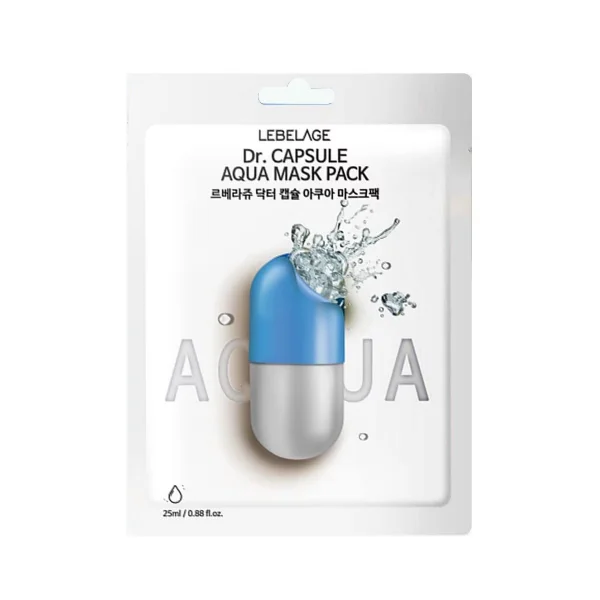 - Lebelage Dr.Capsule Aqua Mask Pack, maska s mořskou vodou, má výrazný hydratační účinek, osvěžuje a tonizuje pleť, nasycuje ji minerály a stopovými prvky, které zvyšují pevnost a pružnost pokožky.