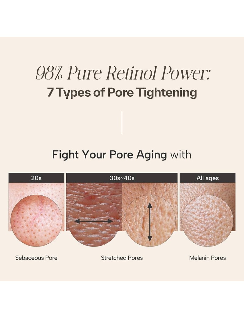 MAYBENA je unikátní korejská kosmetika. Sérum obsahuje 60% rýžové vody, 98% čistý retinol. Efektem je velmi výrazná redukce vrásek a omlazení, díky retinolu rovněž i ztenčení pórů a eliminace jejich velikosti. Působí na všechny typy rozšířených pórů všeho věku. HLAVNÍ ÚČINNÉ SLOŽKY PATŘÍ: - retinol 98% - retinal (forma vitaminu A) - retinyl palmitát pro stabilní a mladistvý vzhled pokožky - rýžová voda 60% - vegan kolagen - beta karoten ÚČINNĚ: - bojuje proti vráskám - ztenčuje póry jakéhokoli tvaru, původu a věku - po 2 týdnech již velmi viditelné výsledky, plná, revitalizovaná pleť s viditelně menšími póry a méně vráskami.