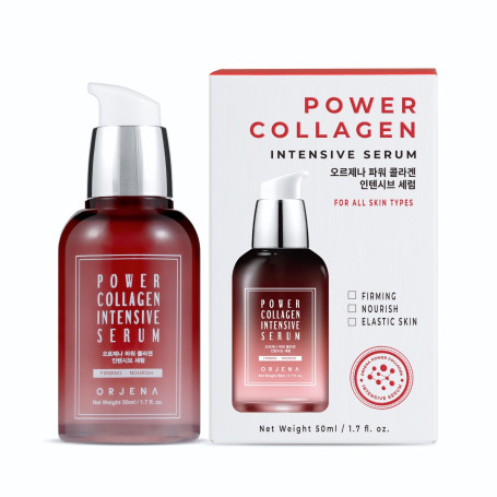 Orjena Power Collagen Serum obsahuje vysokou koncentraci hydrolyzovaného kolagenu, který pomáhá zlepšit elasticitu pokožky. Patentovaná složka (Patent 10-1587443) italského extraktu z listů Senna pomáhá odhalit mladistvě vypadající pleť. Pleť je po aplikaci okamžitě hladká a hydratovaná s viditelným zlepšením. Sérum Collagen obsahuje patentovaný materiál – Amino Acid Complex, který omlazuje pokožku, revitalizuje stárnoucí kožní buňky a zlepšuje jejich zdraví. Italský extrakt z listů Senna, známý pro svou antioxidační aktivitu a pružnost pokožky, přispívá ke zlepšení stavu vrásek.