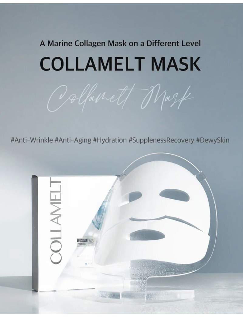 Tato jedinečná maska obsahuje ultranízkomolekulární mořský kolagen o síle 400 Da a nový materiál, který zajišťuje, že 90 % aktivních složek pronikne do pokožky. Je to gelová fólie složená z tvrzeného mořského kolagenu a přírodní esence z mořských řas, která nabízí prodloužené použití bez napjatosti pokožky a její teplotní citlivost umožňuje kolagenu pomalu tát a vstřebávat se podle teploty pokožky uživatele. COLLAMELT MASK od Vemontes představuje novou éru v kolagenové masce, která poskytuje výjimečnou péči o pleť s jediným kusem pleťové masky.